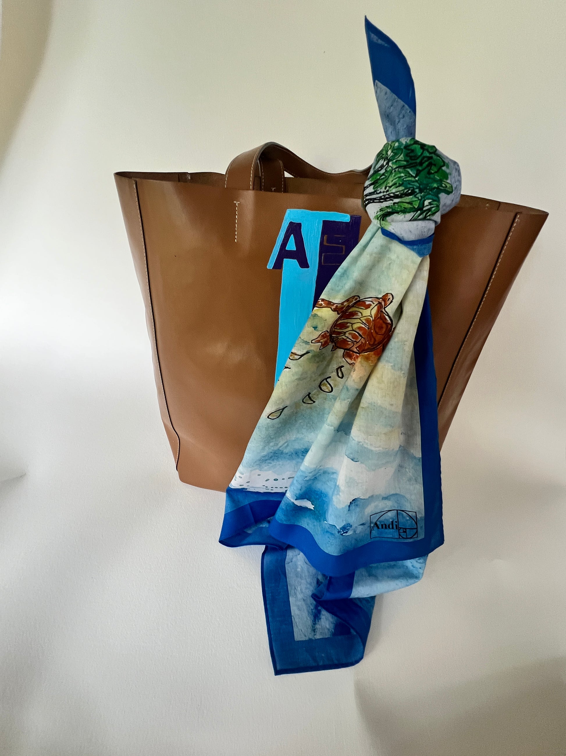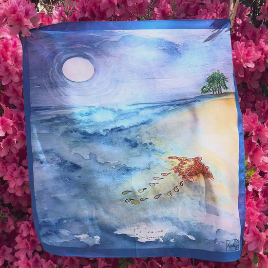 25 x 25 inch square 100% Organic Cotton Sea Turtle To the Shore